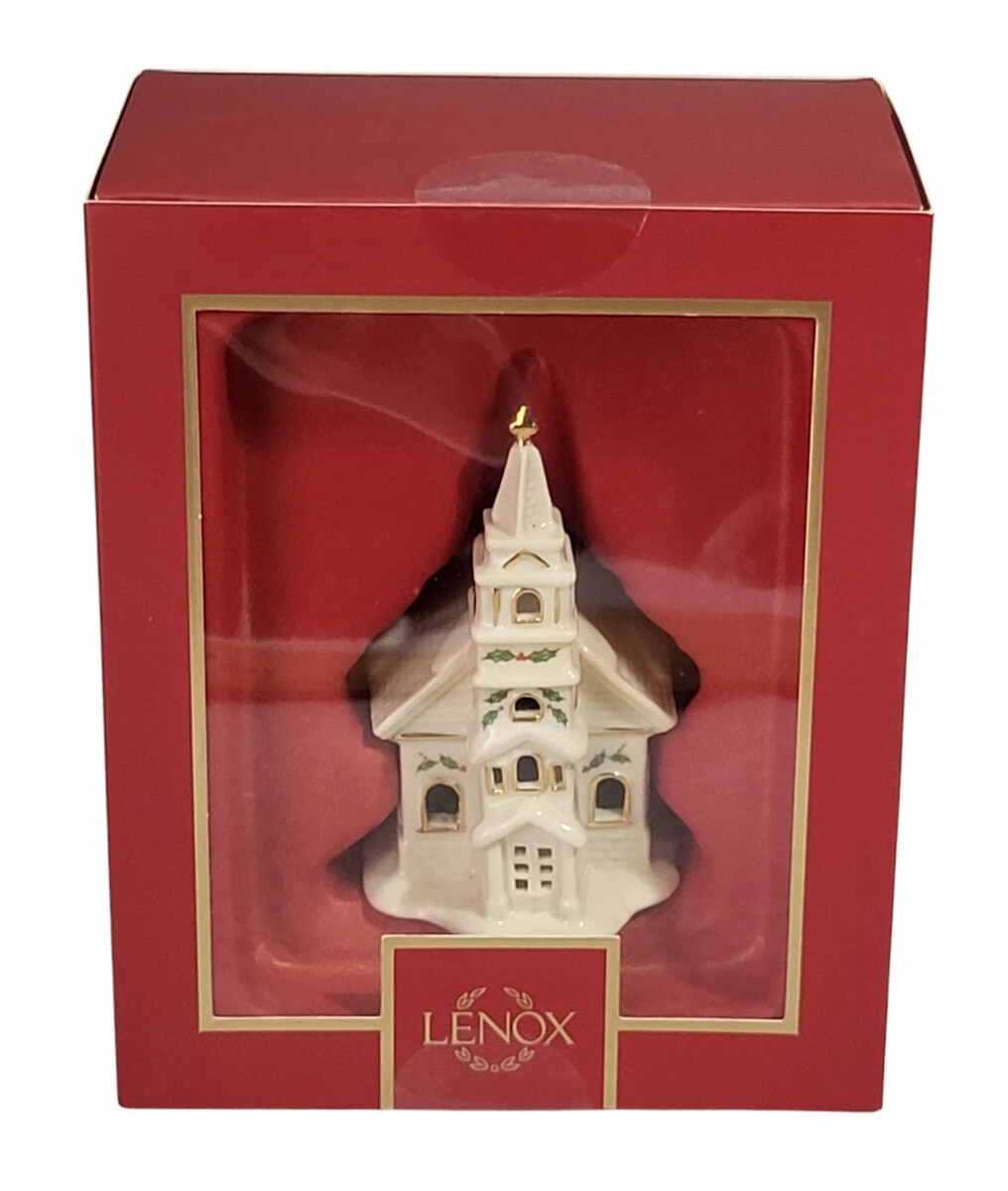 Lenox Christmas Village White Lighted Church Figurine Ornament Holly Berry NEW