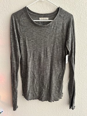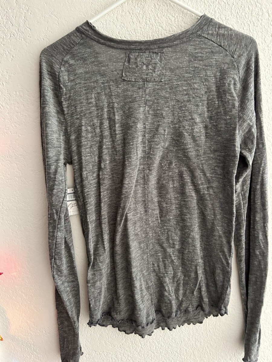 Free People Women's Grey Long Sleeve Sheer Top Sz L