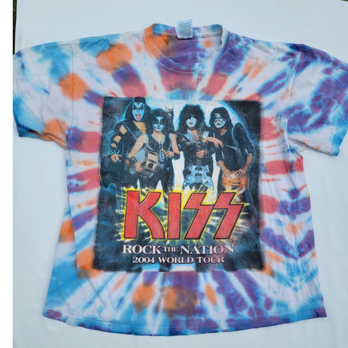 Vintage Y2K KISS 2004 Rock The Nation Tour Shirt Mens Size XL Tie Dye