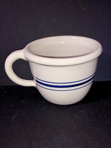 The Martinez Pottery Soup Cereal Bowl With handle is a large handmade stoneware bowl featuring a beautiful blue stripe design. This heritage piece is perfect for serving up your favorite soups or cereals or use as a small mixing bowl. in style. The traditional pottery production technique used by Martinez Pottery ensures high quality and uniqueness in each bowl. Add a touch of charm to your table setting with this functional and decorative piece of dinnerware.