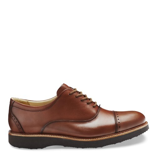 Premium leather upper features a cap toe with broguing throughout.