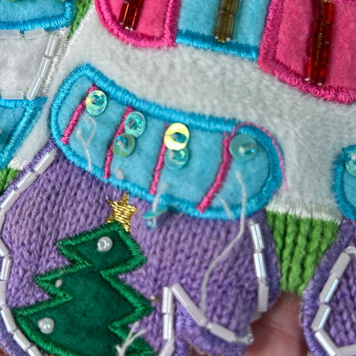 Condition: Excellent vintage holiday condition with a few small loose threads and a couple missing sequins, not noticeable when worn. Clean, vivid color, no stains or holes.