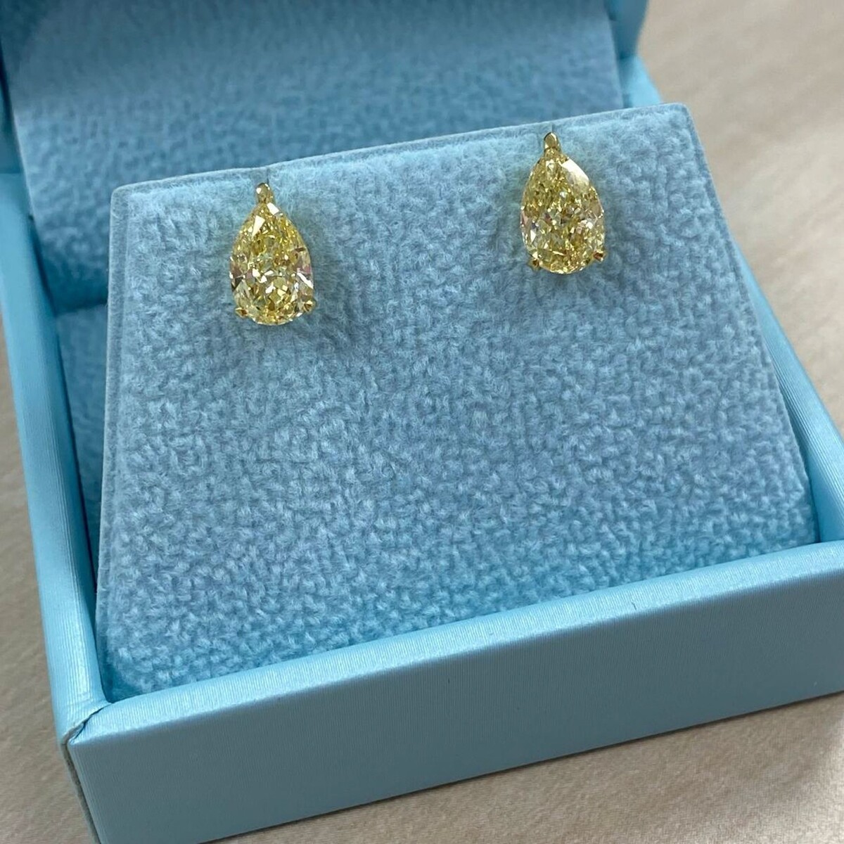 Igi 2.52 Karat Birne Kunstdiamanten Grown Intense Gelb Diamant Ohrstecker 18k