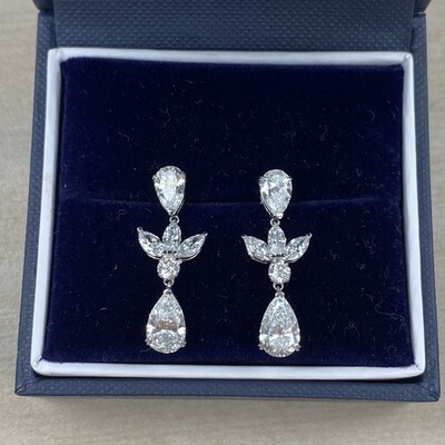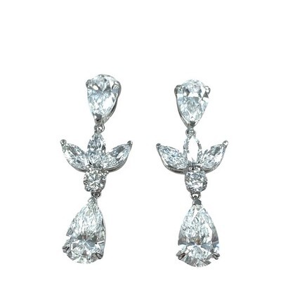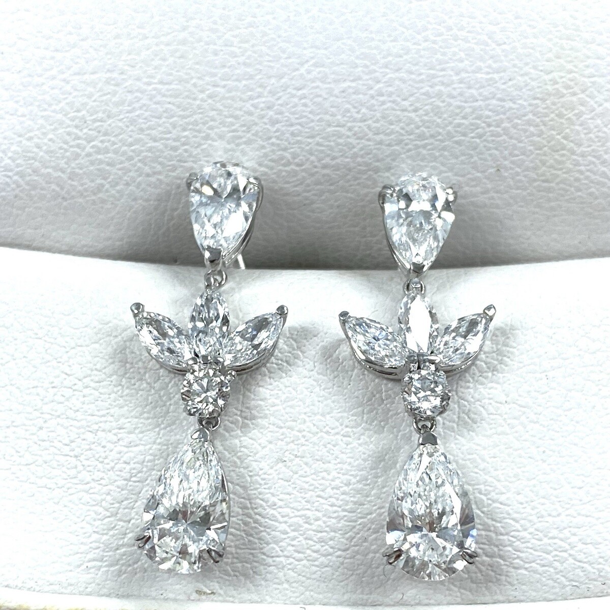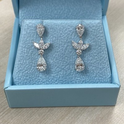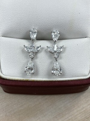 Diese atemberaubenden Tropfenohrringe prasentieren birnenformige, im Labor gezüchtete Diamanttropfen von 1,50 Karat, akzentuiert durch eine funkelnde Gruppe von Diamanten im Marquise- und Rundschliff. Jeder Tropfen ist elegant mit einem oberen 0,74-Karat-Diamanten im Tropfenschliff verbunden, wodurch ein nahtloser Fluss von Brillanz entsteht. Diese aus 14-karatigem Weißgold gefertigten und mit Schraubverschlüssen gesicherten Ohrringe sind sowohl elegant als auch zeitlos ? perfekt für eine Hochzeit oder jeden besonderen Anlass.Wir garantieren Ihnen