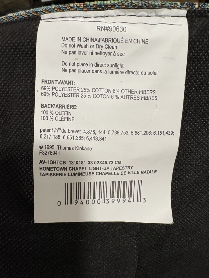 Thomson Kinkade Light Up Tapestry Wall Hanging Hometown Chapel 18” H X 13.5 W