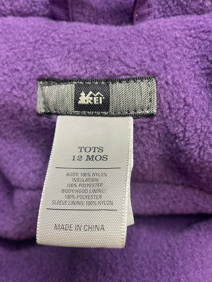 Keep your little girl comfy and warm this winter with this REI snowsuit in a beautiful plum color. Made with durable polyester outer shell material, and lined with cozy fleece, this snowsuit is perfect for snowy adventures outside. The size is 12 months and is suitable for baby girls.