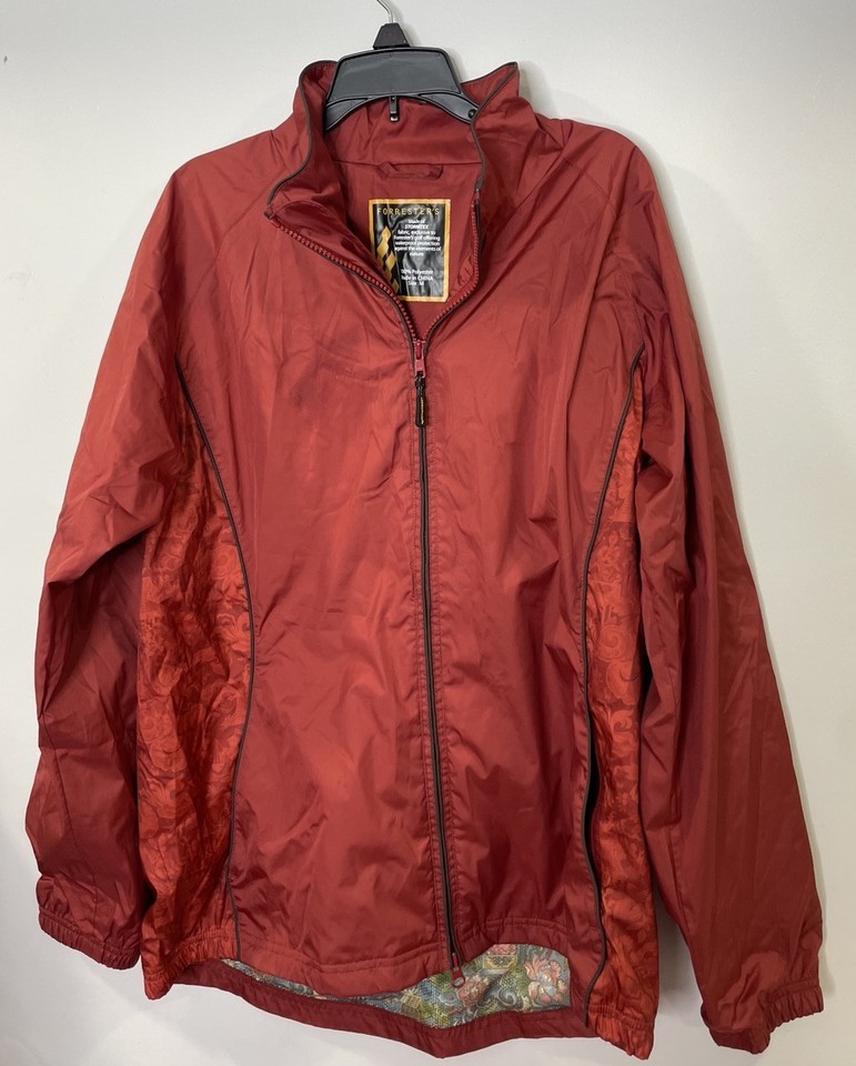 Stay dry and stylish on the golf course with this vintage Forrester's Sportech Stormtex windbreaker jacket. The vibrant orange/red color and solid pattern make it easy to spot on the course, while the mid-length cut and lightweight polyester material provide comfortable coverage for cooler weather. This jacket features a zip closure, polyester lining and insulation, and is designed for regular size women in a size medium.