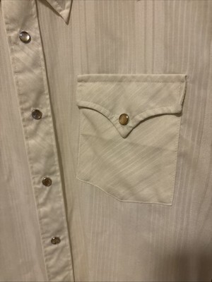VTG 70s H Bar C Western Pearl Snap Shirt Mens Long Sleeve Off White Xl