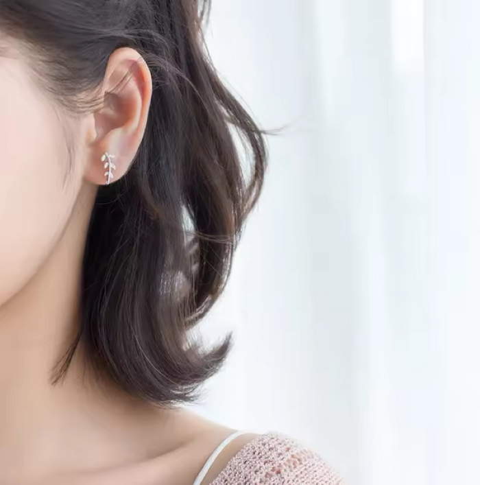 Genuine 18K 925 Sterling Silver Dazzling Little Branch Stud Earrings