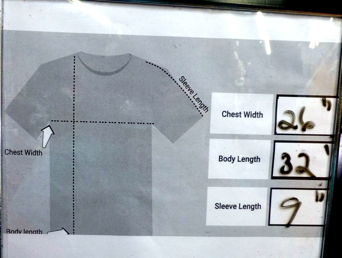 ? Dimensions: Chest Width 26", Body Length 32", Sleeve Length 9"