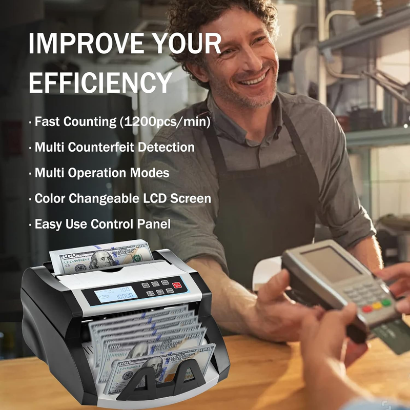 [Multi Anti-Counterfeit Detection:] This money counter machine has UV/MG/MT/IR/DD detecting technology to detect the false bills.
