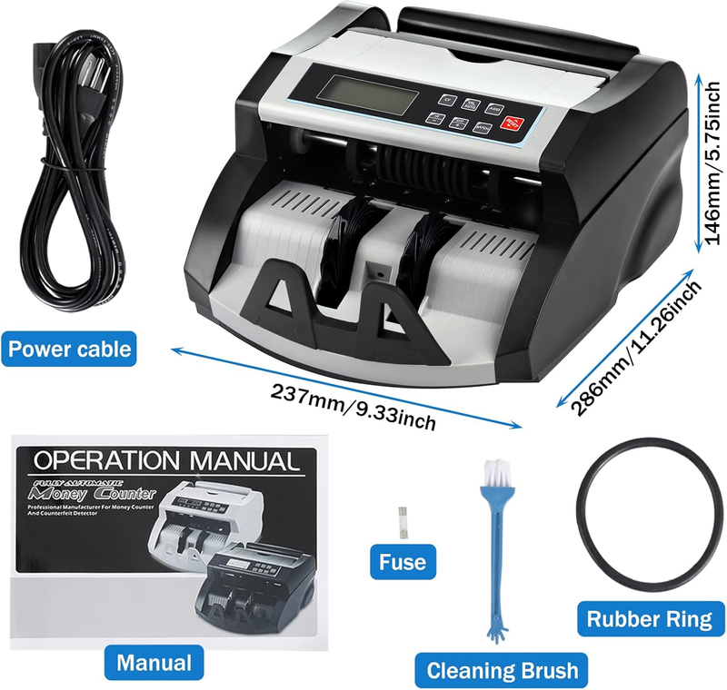 [Efficient and Accurate Counting: ]Money Counter with DC motor that can adapt to wide voltage from DC 85V-250V,to make sure the machine run stable . It can count more than 1100 bills/min smoothly, quickly and accurately.