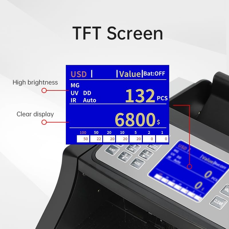 Money Counter Machine ? Value Counting Cash Counter for USD EUR CAD MXN ? Fake Bill Detector with Batch Add ? Large TFT Color Screen Bill Counter - US Service Team
