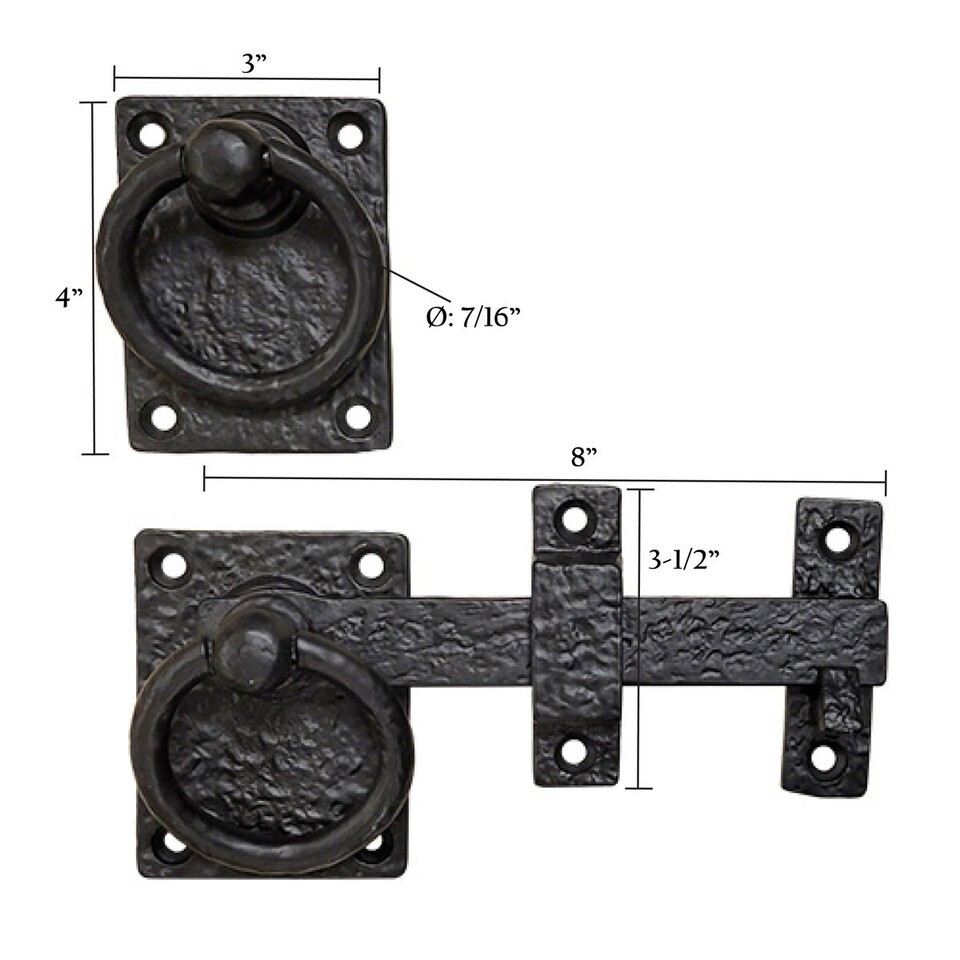 8" Decorative Cast Iron Ring Latch with Handle Gate Door Black Fi |