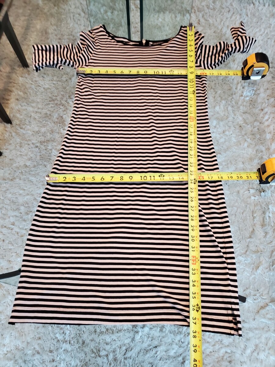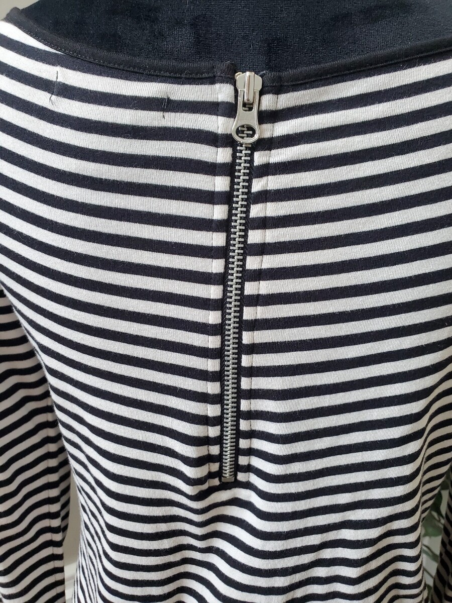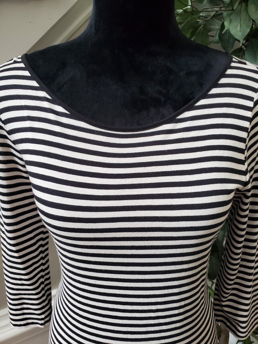 Chelsea & Theodore Womens Black Striped Long Sleeve Knee Length Dress Size Small