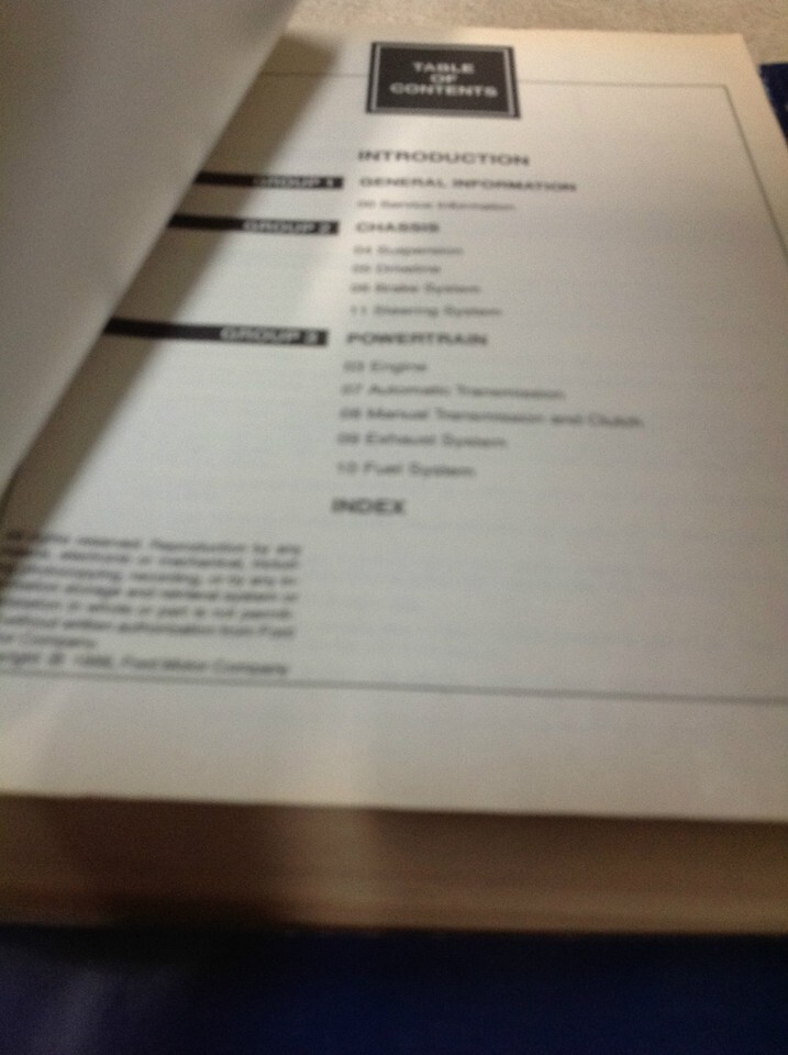 Full of information and illustrations, step by step instructions, assembly/disassembly, exploded illustrations/diagrams/troubleshooting, great manual to have when owning a Ford and will keep your CAR on the road. This manual will save you money in repairs/service.