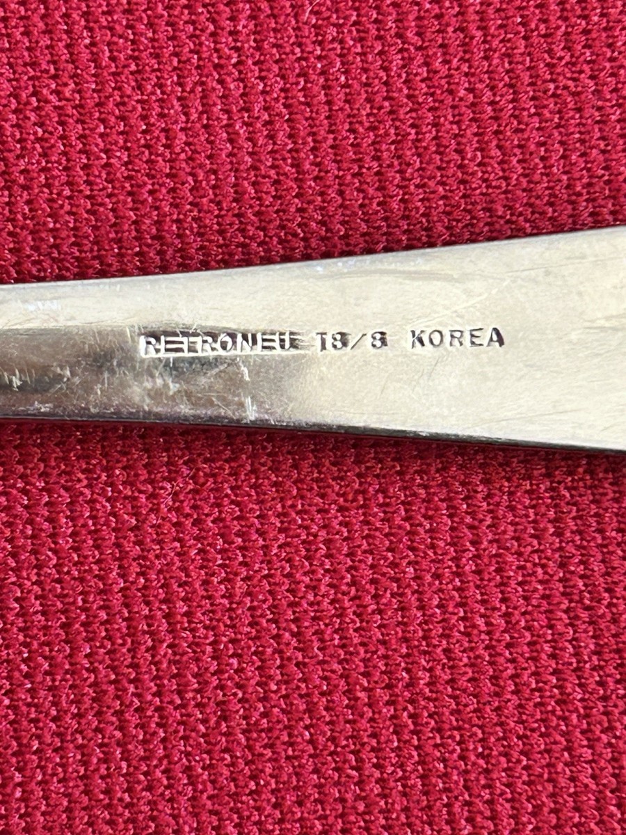 The Vtg Retroneu Kent Stainless Pie Server is a single flatware piece made of stainless steel, featuring a sleek silver color and a length of 10.5 inches. This original pie server from the brand Retroneu is designed with a stainless steel handle, making it durable and easy to use for serving pies in the kitchen or dining room. Crafted in South Korea (Republic of Korea), this vintage pie server is a practical and stylish addition to any kitchen or dining collection.
