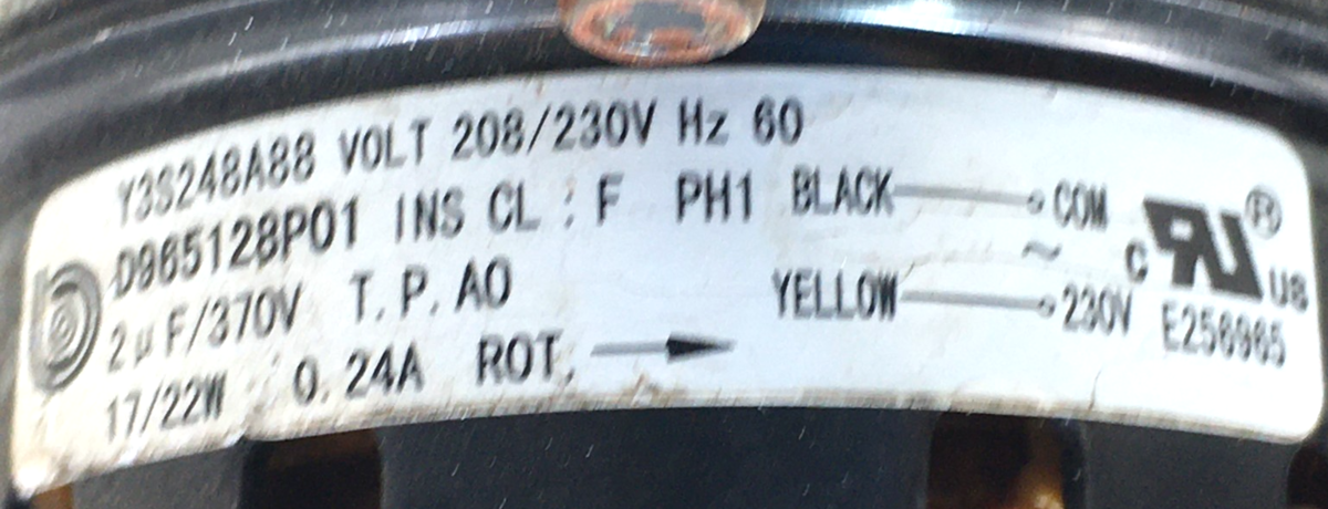 This is Broad-Ocean Y3S248A88 Draft Inducer Blower Motor D965128P01 208/230V used motor.