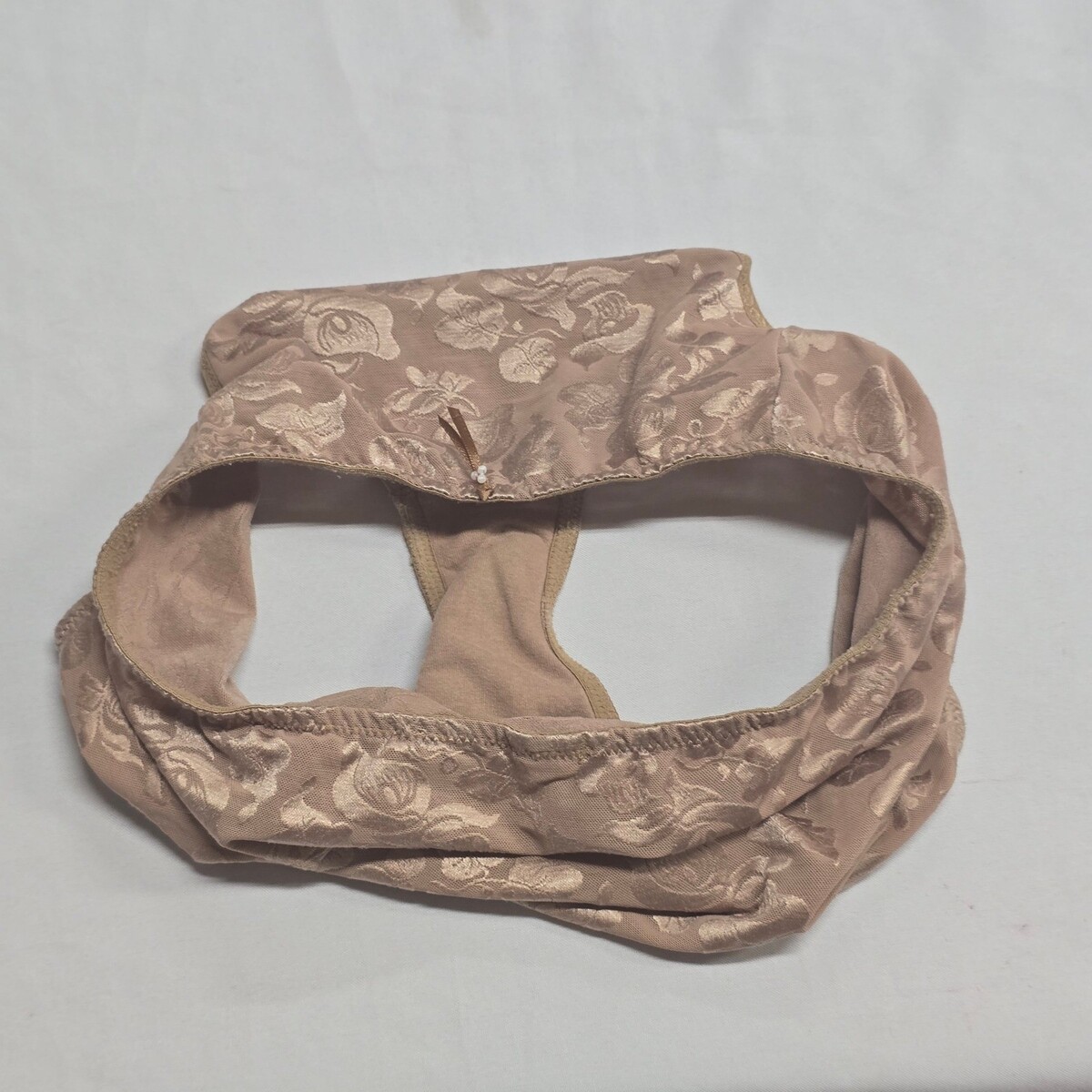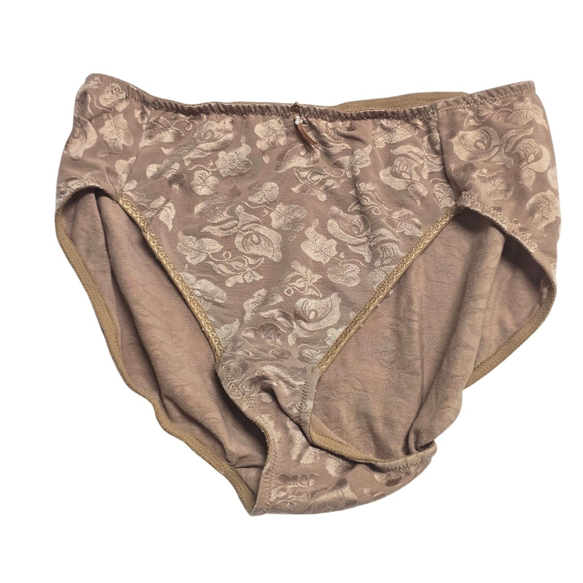 Womens Brief Underwear Panties Beige Floral Mesh Burnout Lace Trim Size 7 L READ