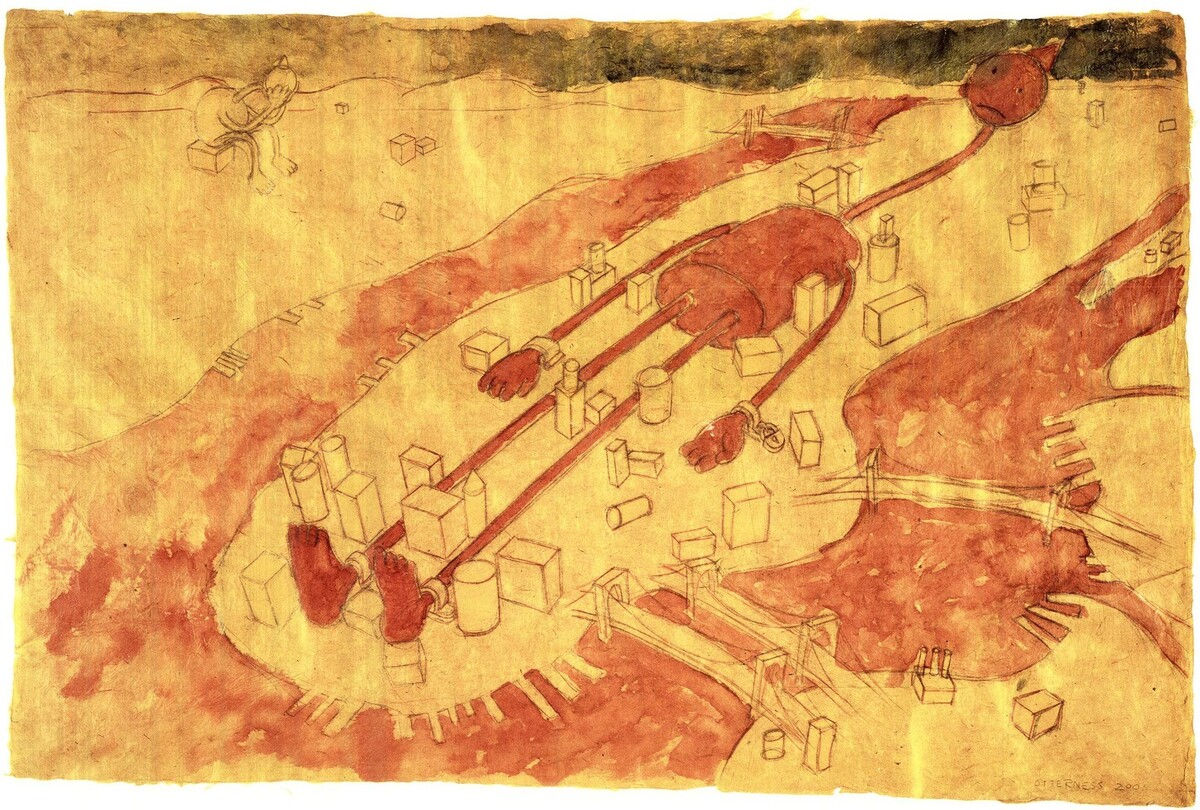 Sku: YY5758Artist: Tom OtternessTitle: Nine-Eleven (9/11)Year: 2001Signed: NoMedium: Offset LithographPaper Size: 24 x 34.75 inches ( 61 x 88 cm )Image Size: 20.75 x 31.5 inches ( 53 x 80 cm )Edition Size: UnknownFramed: No: Inquire with our experts for framing suggestions.Condition: A: MintAdditional Details: This offset lithograph by acclaimed American sculptor Tom Otterness was created in remembrance of the September 11 attacks. In his signature visual language?simple yet emotionally resonant?Otterness depicts a lone, cartoon-like figure standing amidst the ruins of the fallen Twin Towers. The image is both stark and moving, conveying a deep sense of vulnerability, grief, and reflection. The print captures Otterness's personal response to the tragedy, offering a quiet moment of mourning and empathy through a visual that is both universally relatable and distinctly grounded in the trauma experienced by the city. Otterness later reflected on 9/11 as ?a kind of science fiction moment,? recalling how the empty streets and surreal silence in New York felt otherworldly. ?It was like those ?50s science fiction movies where all of New York has no cars? America has never had war on its soil, and so I think it is the first example? to have that brought home,? he said in an interview. (bigthink.com) This print stands as a visual meditation on collective loss and resilience?sober, symbolic, and emotionally resonant.
