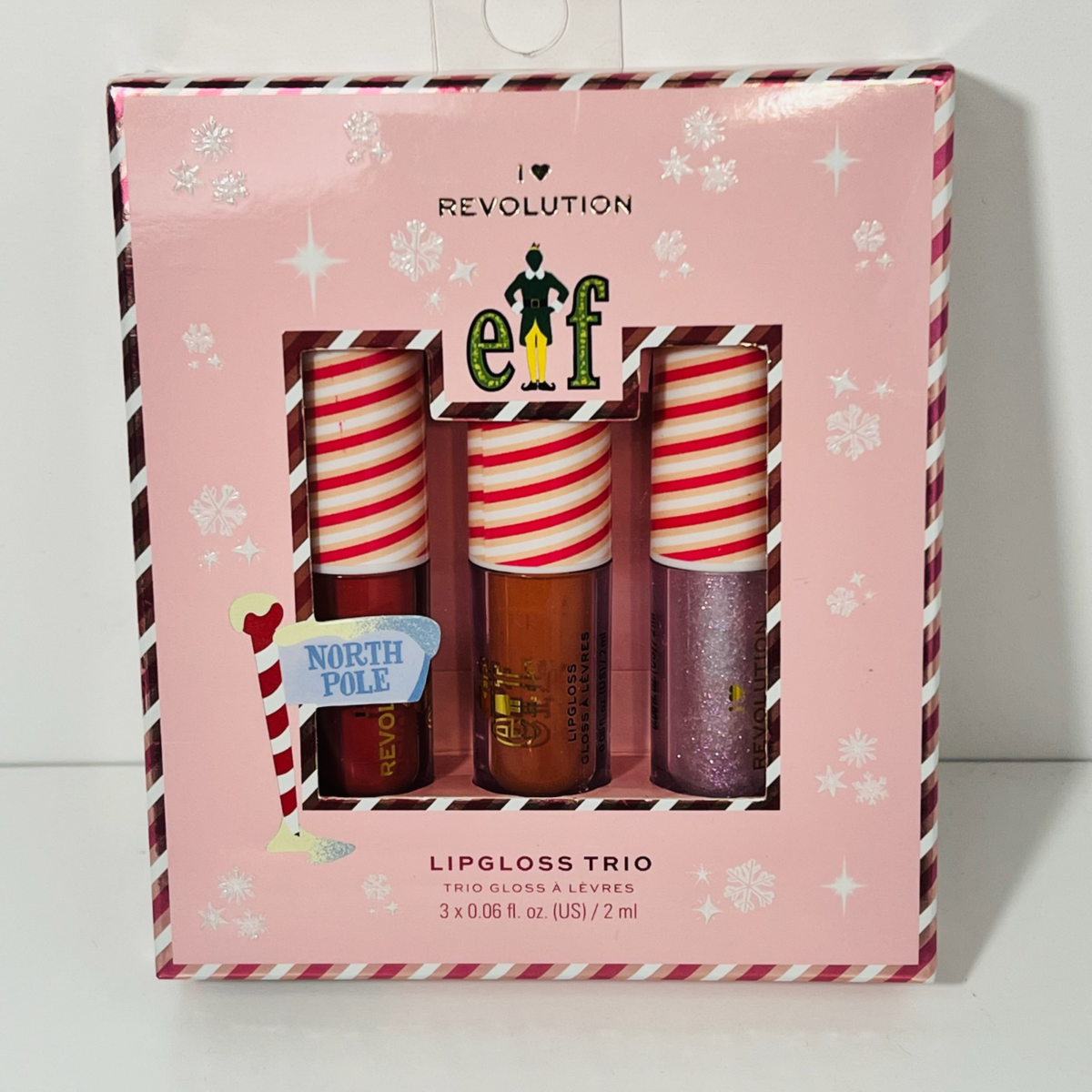 I Heart Revolution ELF Candy Cane Forest Lip Gloss Trio NIB
