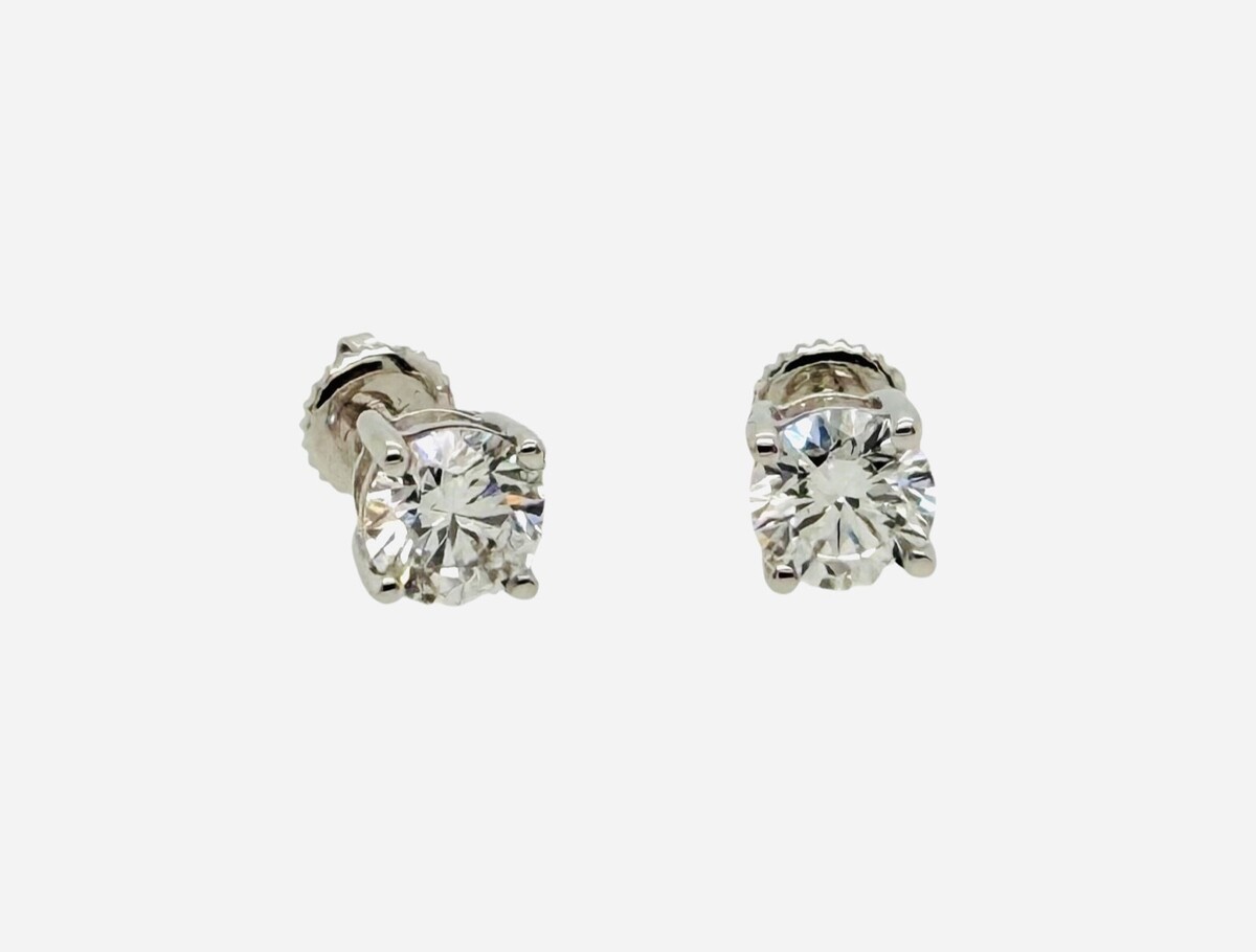 14K White Gold Round Lab Grown Diamond Screw Back Stud Earrings 0.50ctw E/VS1