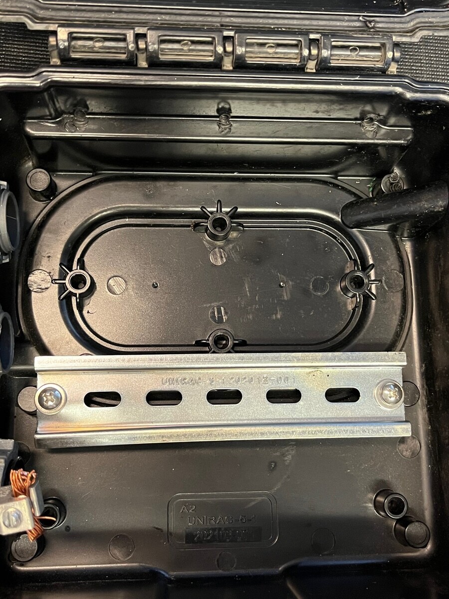 Pre-installed DIN rail for circuit protection or terminal block mounting