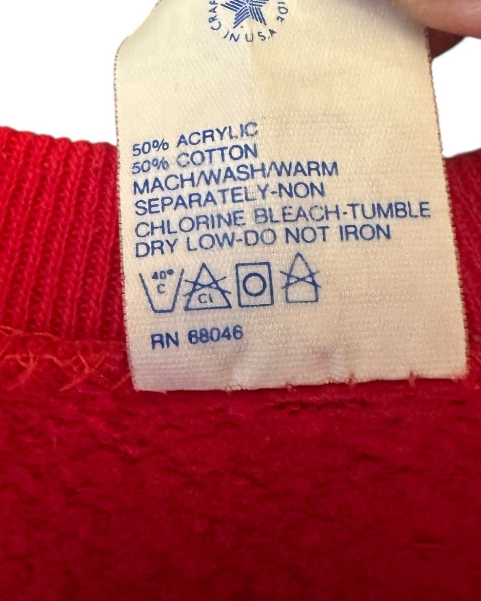 Vintage 80's Christmas Sweatshirt Red Christmas Reindeer Applique Rudolph Bells Tultex Lightweight