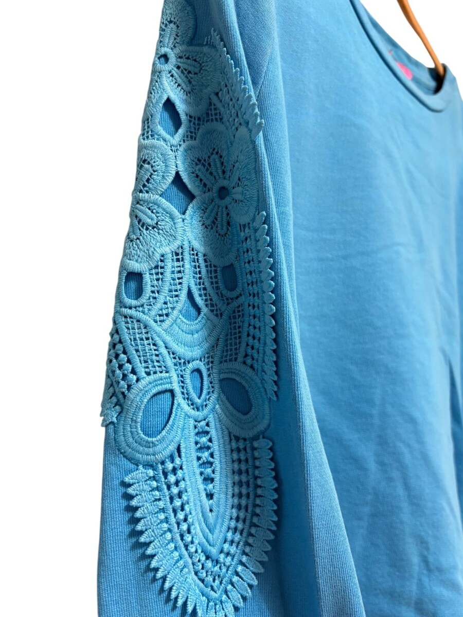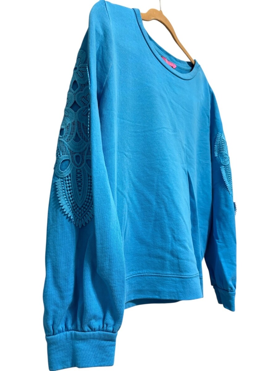 Lilly Pulitzer Rooney Sweatshirt with Lace Sleeves Blue XL
