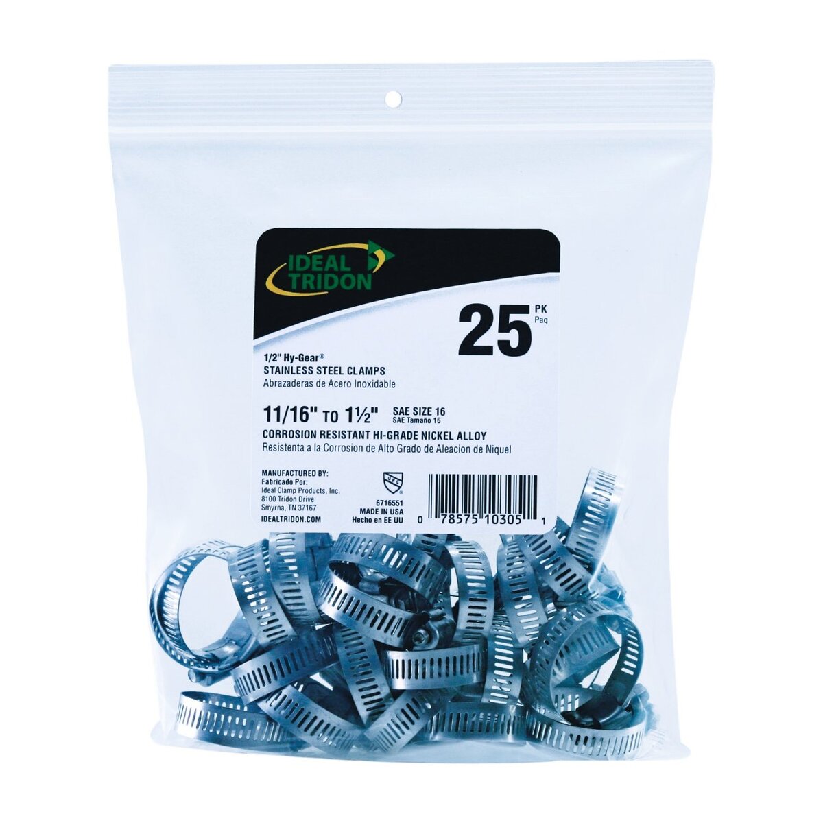 IDEAL CLAMP PRODUCTS 6716550Hose Clamp Ideal Tridon Worm Gear Hose Clamp, Series