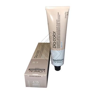 LOreal Professionnel DIA Richesse Hair Color 1.7oz (4.15/4BRv) Demi-permanent alkaline hair color system without ammonia. Rich and deep reflects. Shiny and visible results even on a dark base. Covers up to 70% of gray hair. Apply to natural or colored hair using a shade at the same level as the original color. Ionene G + Incell technology complex helps strengthen and protect hair fiber.