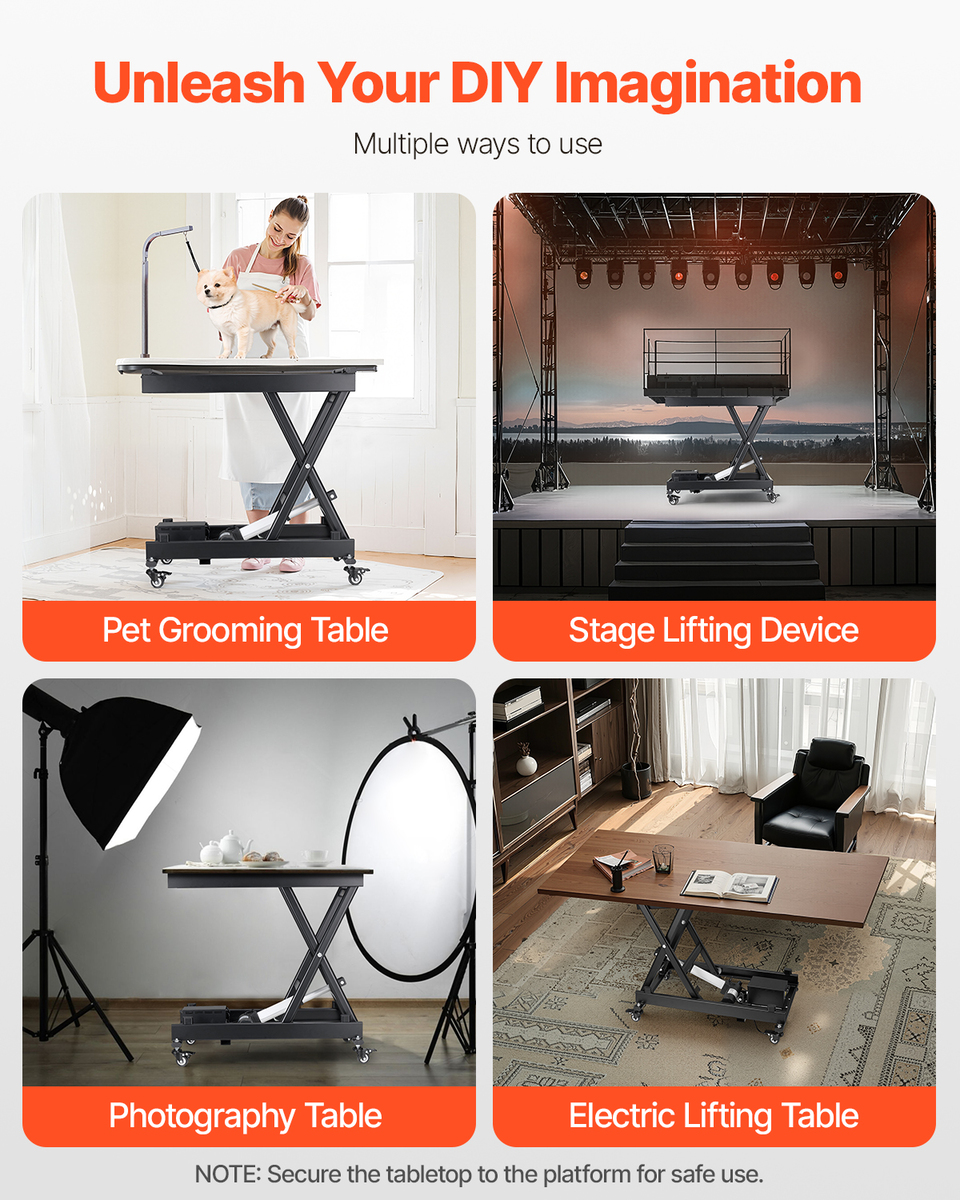 Two Control Modes: Operating our single scissor lift table is remarkably simple. It offers two control methods: a wired controller or a wireless remote, allowing you to raise or lower the table. The wireless remote operated within a range of 10 meters, making it convenient for you to control the table from a distance. Ideal for pairing with different tabletops or accessories, it can be customized into a tatami table, liftable coffee table, photography stand, or laboratory lift device