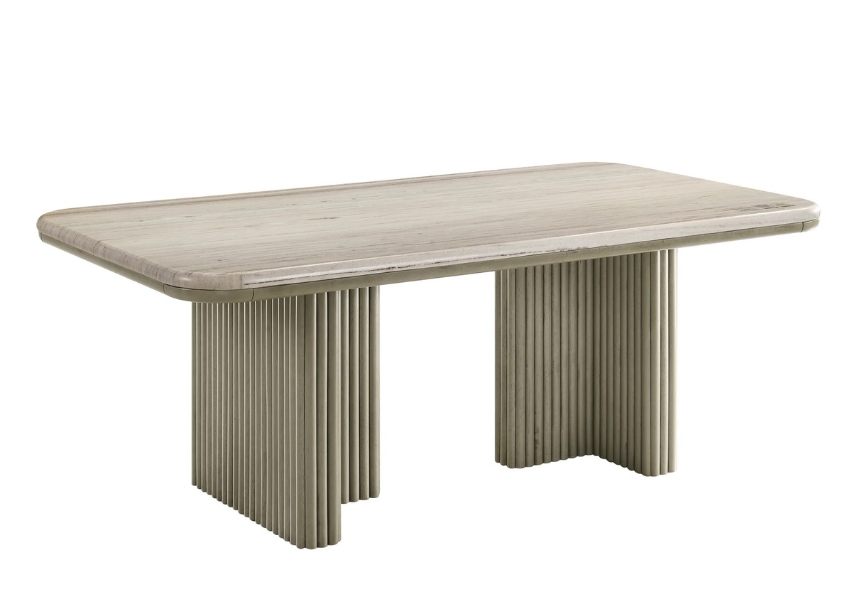 Contemporary Fluted Base: The table is supported by a robust, architectural base made from durable Grey Oak wood.