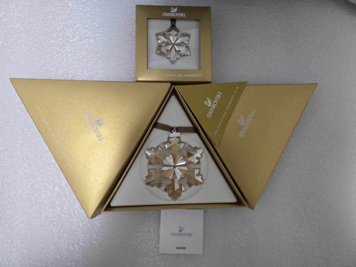 Swarovski 2016 Large & Small GOLD Star/Snowflake/Christmas Ornament with boxes