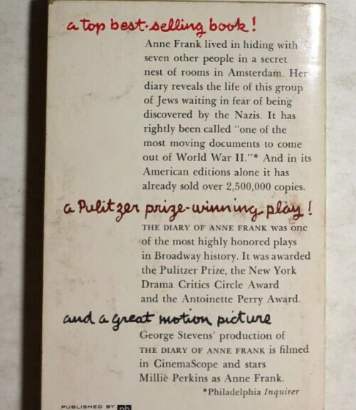 THE DIARY OF A YOUNG GIRL by Anne Frank (1963) Pocket Books movie paperback