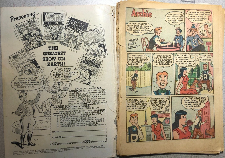 ARCHIE'S PALS 'n' GALS #4 (1955) Archie Giant Comics POOR