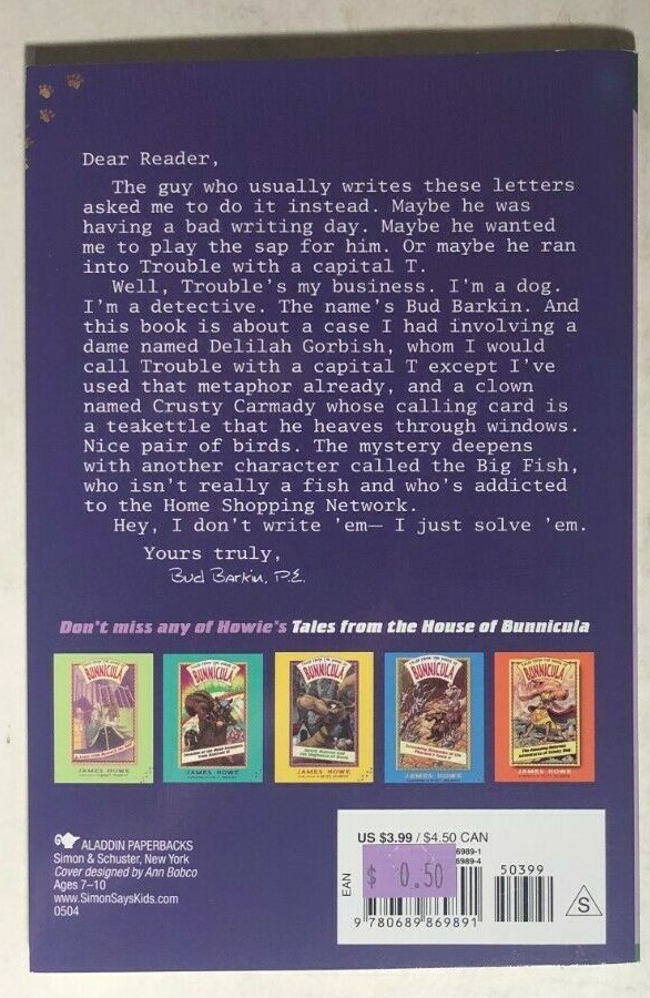 BUD BARKIN, P.I. by James Howe author of Bunnicula (2004) Alladdin softcover
