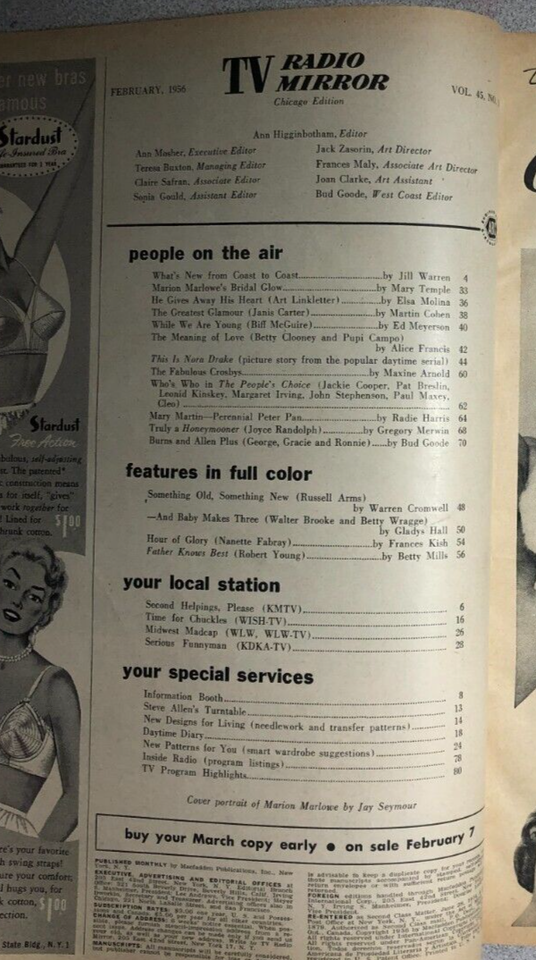 TV RADIO MIRROR magazine February 1956 Marion Marlowe cover