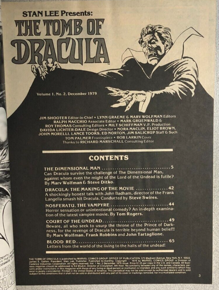 TOMB OF DRACULA #2 (1979) Marvel Comics black-and-white magazine VERY FINE