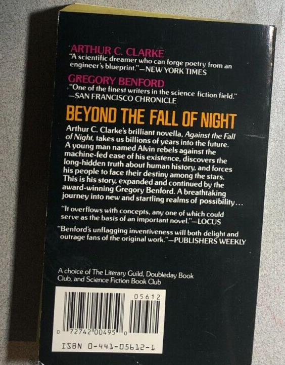 BEYOND THE FALL OF NIGHT by Athur C Clarke & G Benford (1981) Ace SF paperback