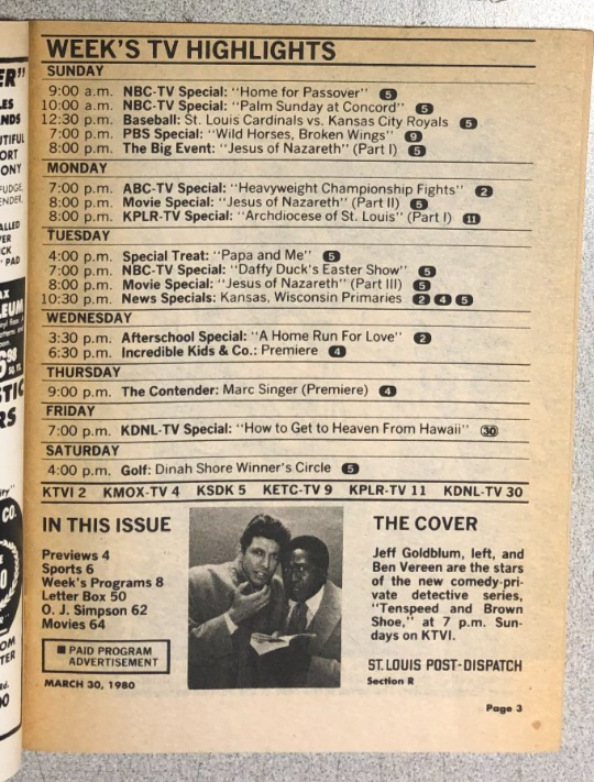 TV MAGAZINE St Louis (MO) Post-Dispatch March 30 1980 Jeff Goldblum & Ben Vereen