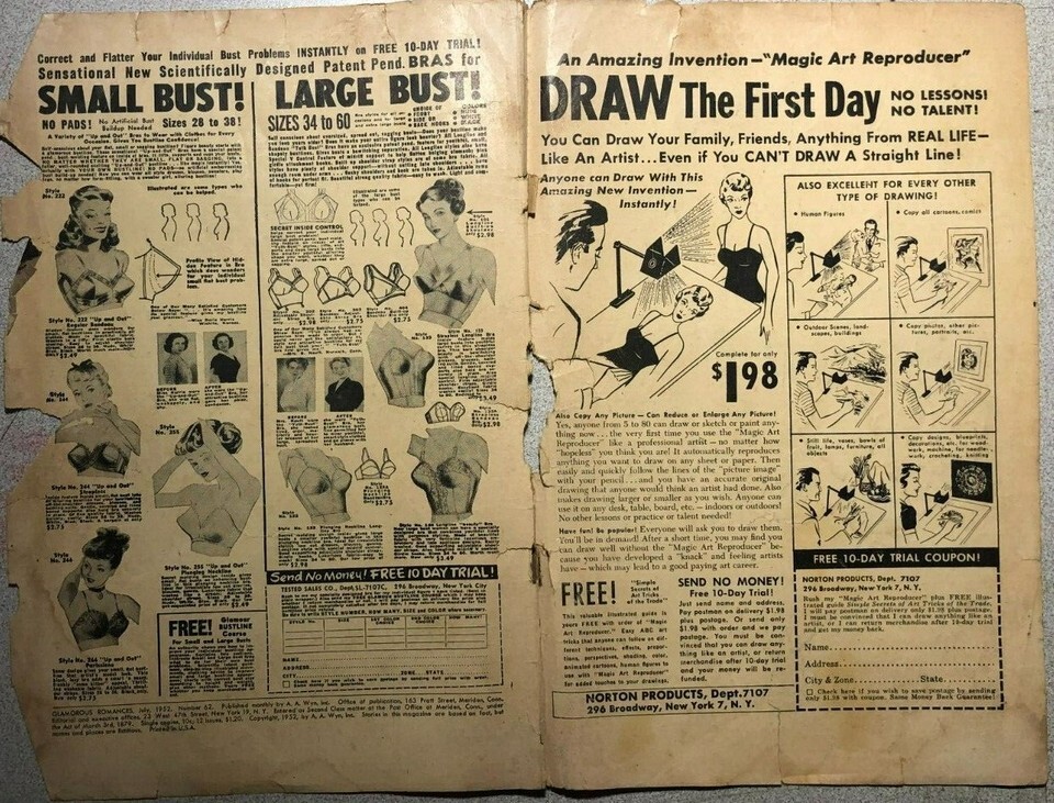 GLAMOROUS ROMANCES #62 (1952) Ace Comics wraparound cover (no comic) FAIR/GOOD