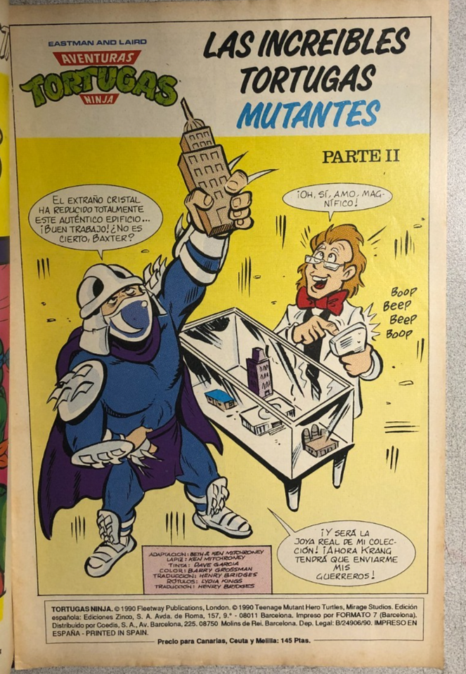 TEENAGE MUTANT NINJA TURTLES ADVENTURES #7 (1990 Spain) Spanish language comic