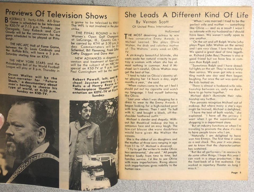 TV MAGAZINE St Louis (MO) Post-Dispatch July 21 1974 Suzanne Rogers cover