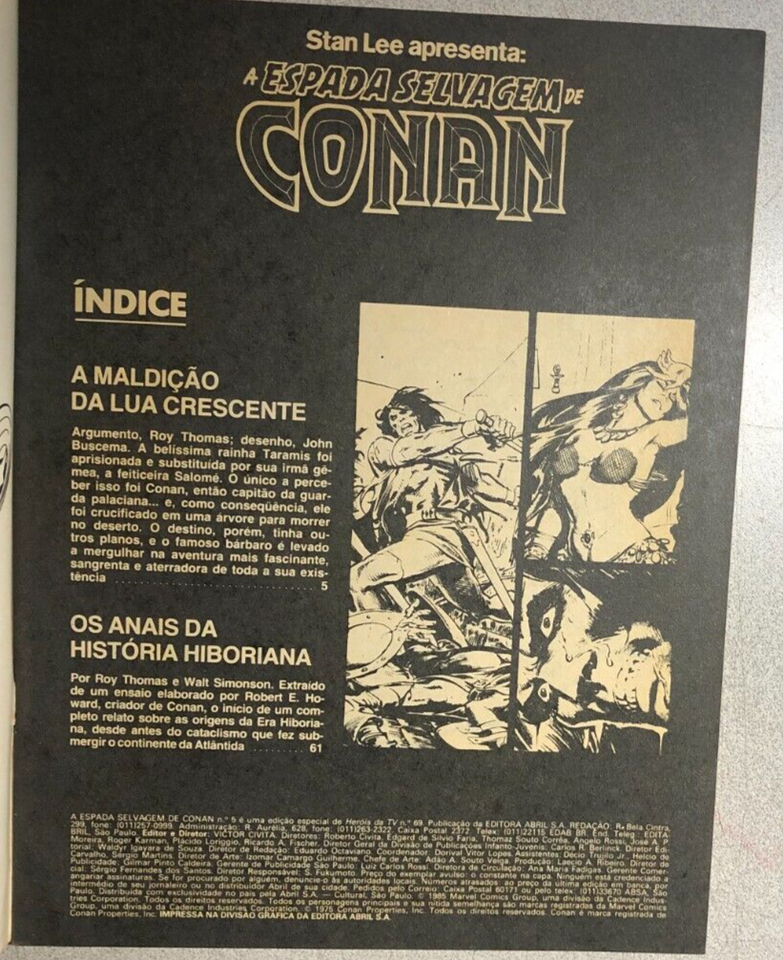 A ESPADA SELVAGEM DE CONAN #5 Brazil (1985) B&W Marvel magazine Portuguese FINE+