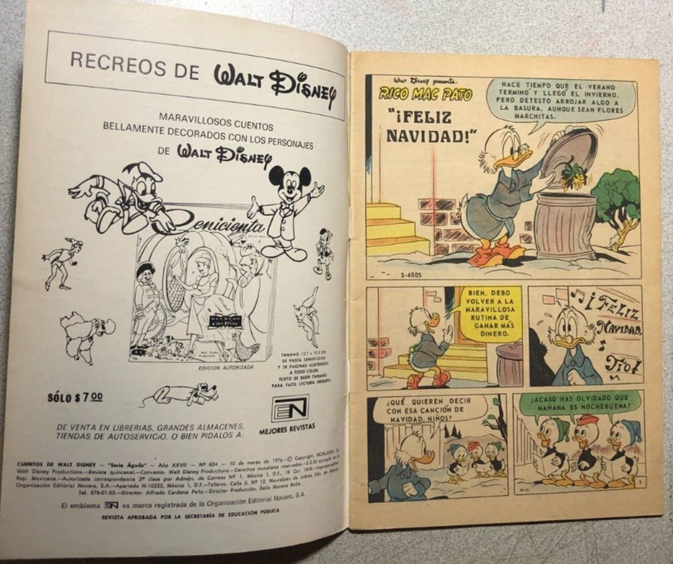 CUENTOS DE WALT DISNEY (1976) smaller Mexican color comic book in Spanish FINE