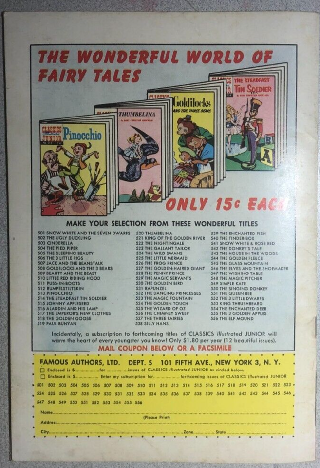 CLASSICS ILLUSTRATED JUNIOR #555 The 3 Golden Apples (HRN 556) VG++