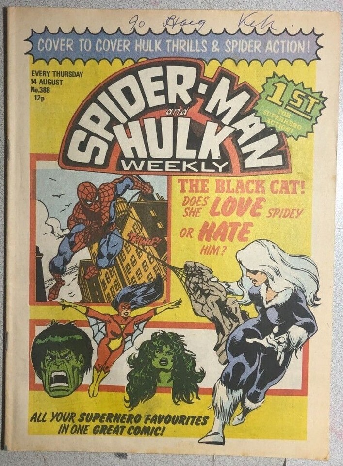 SPIDER-MAN & HULK WEEKLY #388 (1980) Marvel Comics UK Spider-Woman She-Hulk FN-