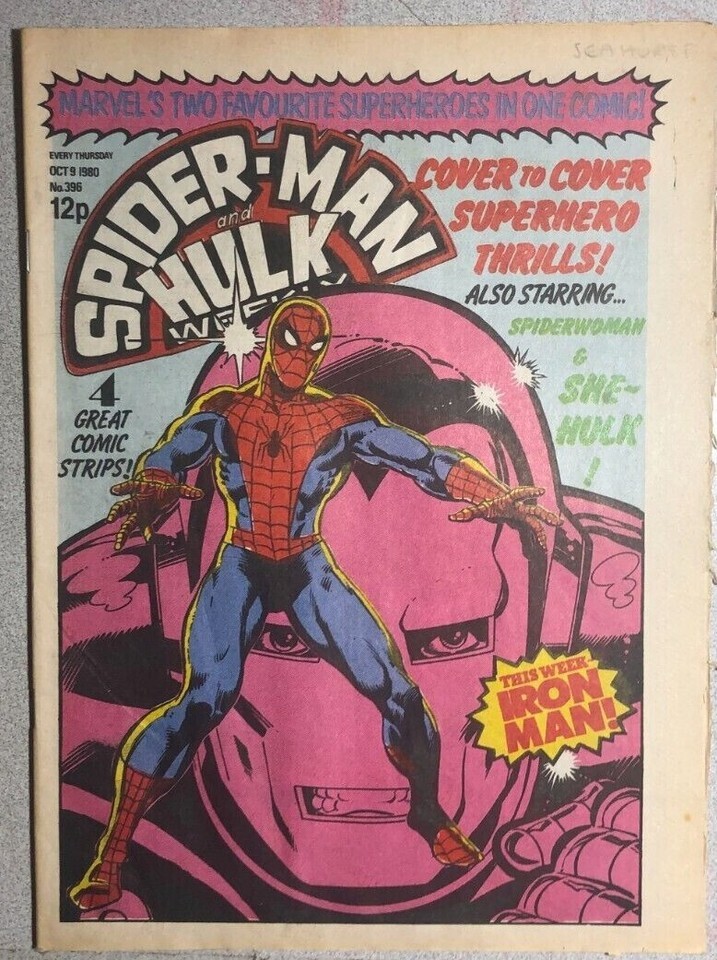 SPIDER-MAN & HULK WEEKLY #396 (1980) Marvel Comics UK Spider-Woman She-Hulk VG+