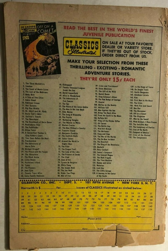 rough comic, with many defects including tears. missing pieces, water damage,
